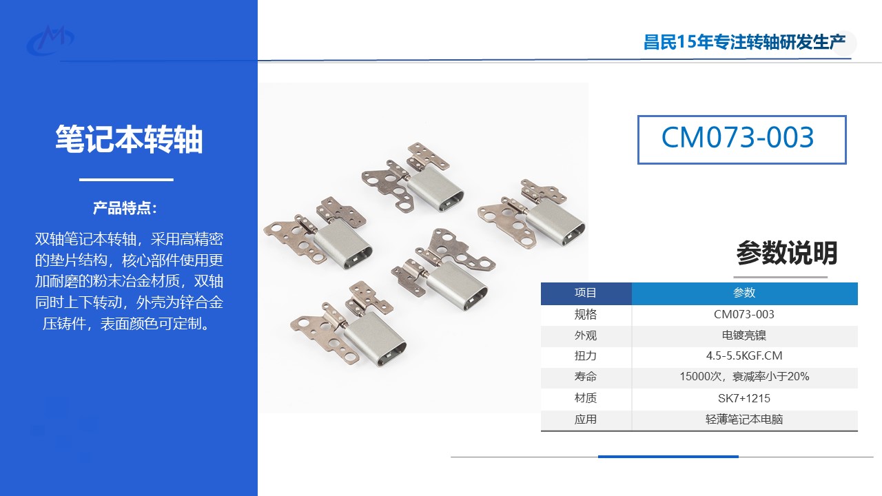 手機(jī):133-4266-6888隨著筆記本電腦更輕、更薄的發(fā)展,轉(zhuǎn)軸的結(jié)構(gòu)設(shè)計也在不斷變化。筆電轉(zhuǎn)軸是典型的活動部件,既要承受彎矩又要承受扭矩,對開合體驗起了決定性的影響,從隱藏在筆記本電腦中的經(jīng)典墊圈結(jié)構(gòu)轉(zhuǎn)軸到現(xiàn)在帶殼的齒輪結(jié)構(gòu)轉(zhuǎn)軸,筆記本電腦在翻轉(zhuǎn)時可以靈活地切換角度,更便于攜帶。目前我們經(jīng)??梢钥吹?a href="http://m.qdluochi.com/" target="_blank">帶殼的筆記本電腦轉(zhuǎn)軸,這樣的結(jié)構(gòu)設(shè)計有有什么功能和優(yōu)勢呢?今天昌民小編就帶大家了解一下。